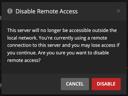 Click the Settings icon (top right) → "Server" (top) → "Network" (left).