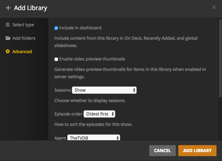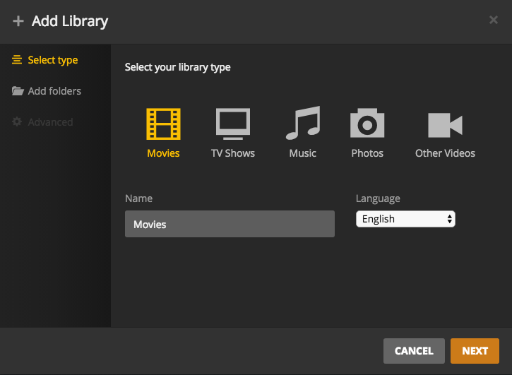 In this section, we will add two libraries: one for Movies and one for TV.