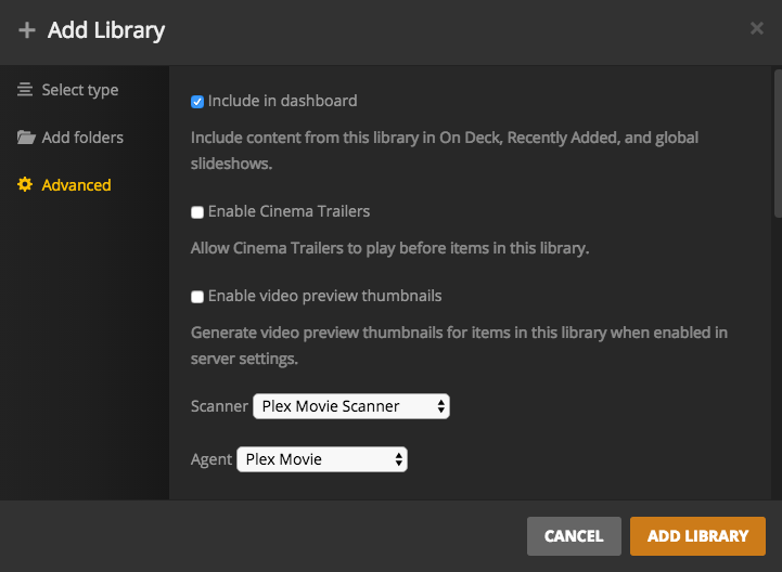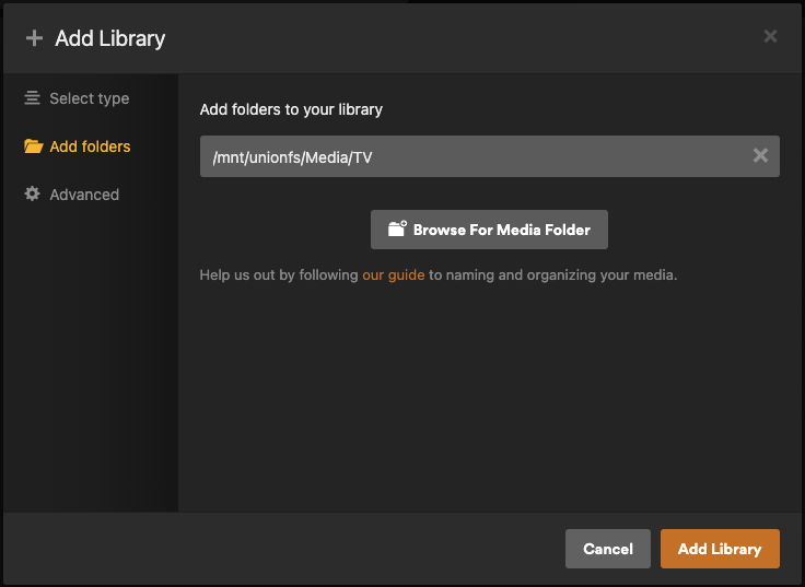 Note: If you would like to have custom Plex libraries (more than just a Movies and TV one), see Customizing Plex Libraries.