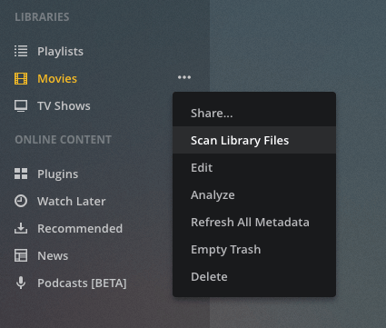 Click the 3 dots next to a Plex library.