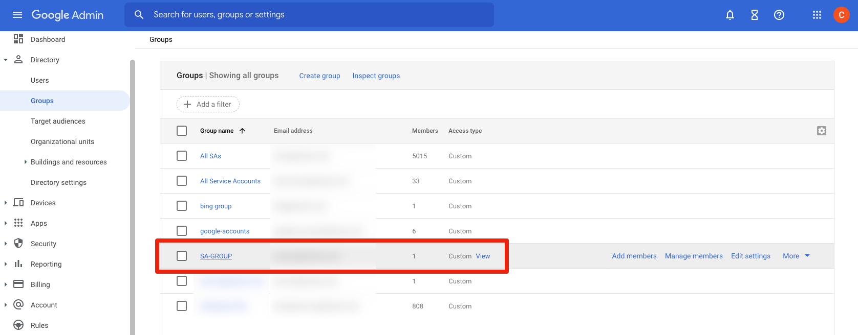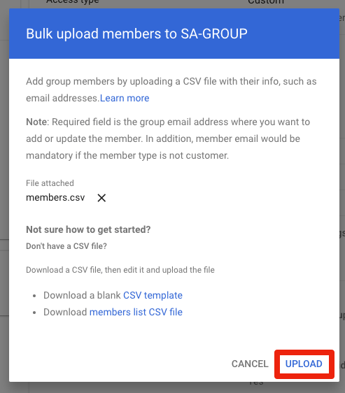 5. Download the members.csv file that sa-gen created next to the service account files to your local computer using sftp or whatever other means.